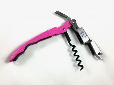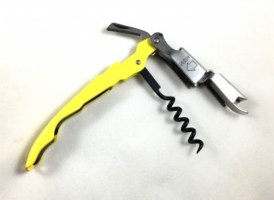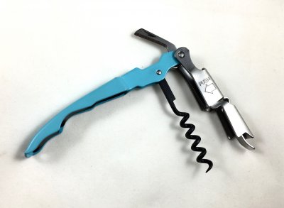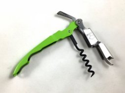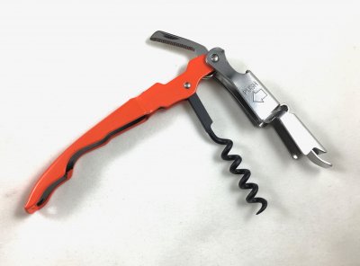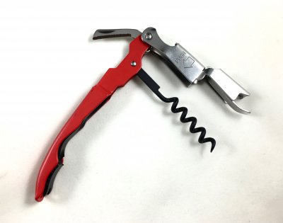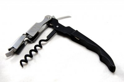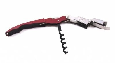 Utrustad med en patenterad dubbel och fjädrande hävarm. Rostfri räfflad kniv för effektivt avlägsnande av folie. Skruv i tunt teflonbelagt rostfritt stål som lätt smyger in i korken. Kapsylöppnare.