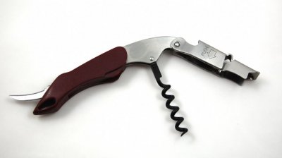 Utrustad med en patenterad dubbel och fjädrande hävarm. Rostfri räfflad och böjd kniv för effektivt avlägsnande av folie. Skruv i tunt teflonbelagt rostfritt stål som lätt smyger in i korken. Kapsylöppnare. Ögla för att fästa korkskruven med exempelvis en kedja - du tappar aldrig bort den.