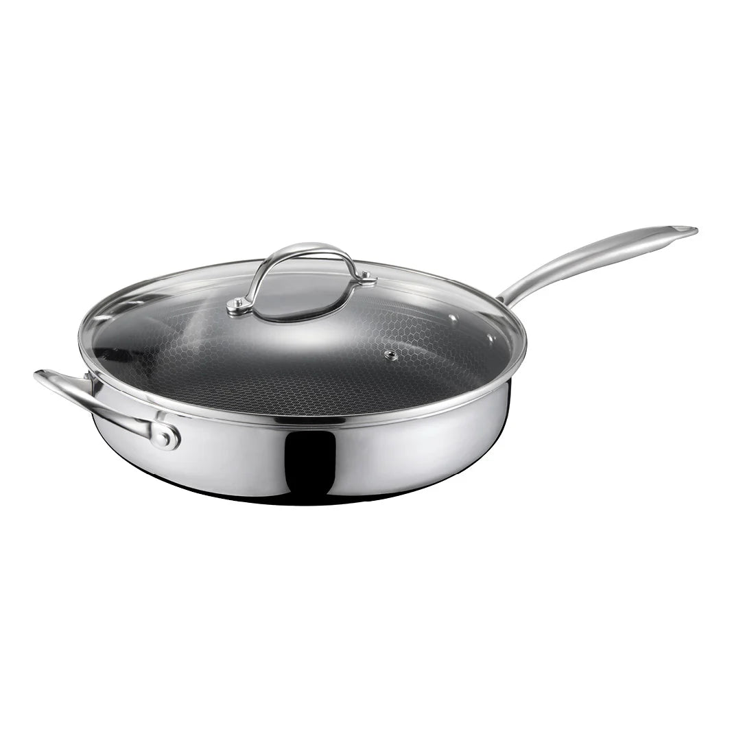 Eminence Traktörpanna Ø30 cm är idealisk för stekning, sautering och bräsering. Den keramiska beläggningen är fri från PFAS och ger utmärkt non-stick. 3-Ply-konstruktionen med aluminiumkärna ger jämn värmefördelning. Det medföljande locket bevarar värme och fukt, och HoneyComb-mönstret ger en jämn stekyta.
