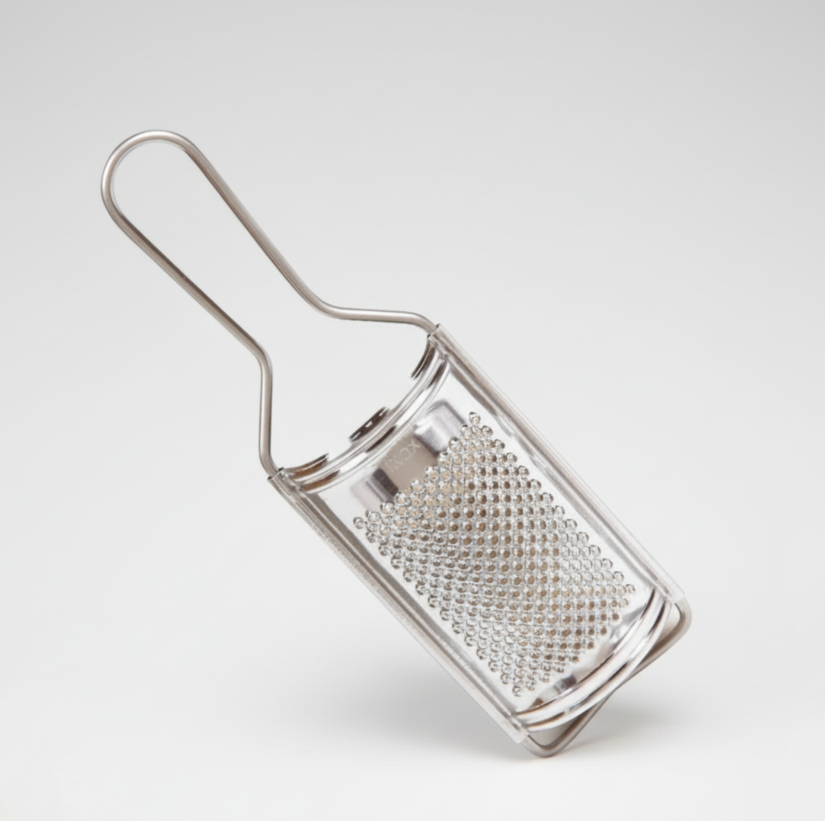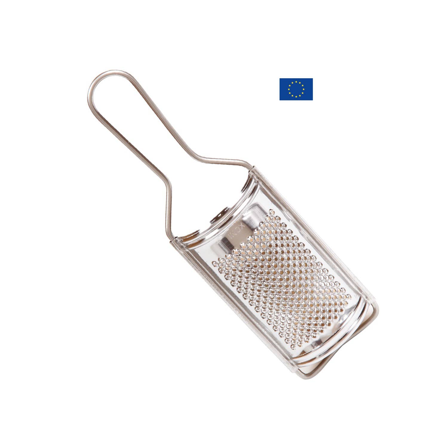 Litet traditionellt rivjärn för parmesan men även för muskotnöt, ingefära, citronskal etc. Bladet är böjt. Från en liten fabrik i Västeuropa, vacker hantverkskvalitet och finish. - Mått: 17 cm Tillverkad i Europa.