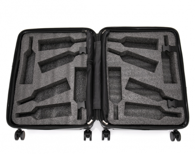 3. Exakt teknik för flasksäkerhet: Det viktiga är att säkra dyrbara vinflaskor under transporten. Det är därför vi har noggrant designat interiören och eliminerat onödiga funktioner som utvändiga remmar och ytterligare små skumbitar inuti flaskhålen. Resultatet? Flaskorna passar perfekt, stannar på plats och är skyddade från alla risker för brott. Var säker, resväskan har framgångsrikt klarat rigorösa krocktester för extra sinnesro.