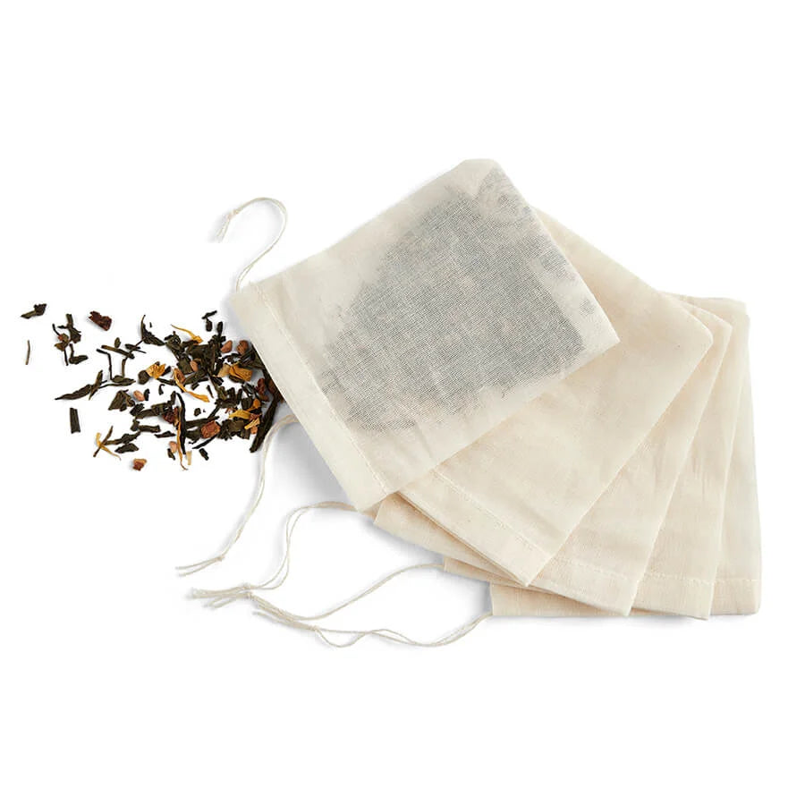 Ekologisk bomullspåse för att ge och uttrycka den fulla smaken av teer, örter och kryddor. Snöret är tillräckligt långt för att passa muggar och tekannor. S