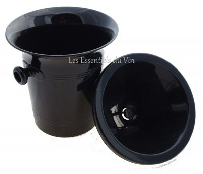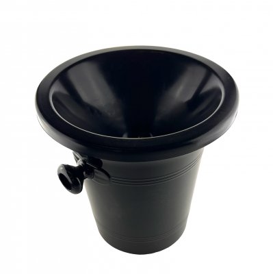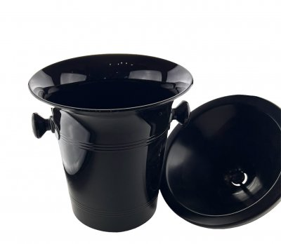 Snygg spottkopp/spotthink/spittoon i blank svart plast. Till formen en ishink/champagnekylare men med en löstagbar tratt som gör att den kan användas som både och.