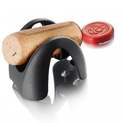Folieskärare från Vacu Vin som med ett enkelt handgrepp avlägsnar folien aom akyddar vinets kork. Dubblerar även som liten elegant korkhållare.