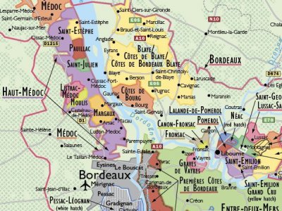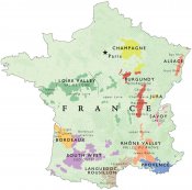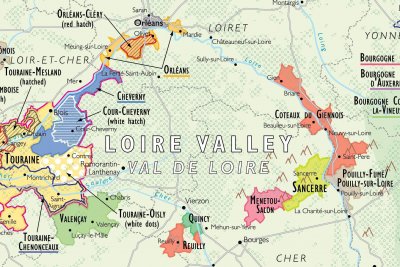 Helt uppdaterad 2023, mycket detaljerad, tydlig och grafiskt elegant och dekorativ karta. Till skillnad från andra vinkartor ses landet pedagogiskt i sitt sammanhang med angränsande länder och vinregioner.
