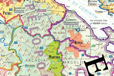 Detta är den enda aktuella vinkartan över Grekland på marknaden. Samtliga 33 PDO och 120 PG- områden redovisade. Inkluderar också detaljerade kartor över Nemea och Santorini.