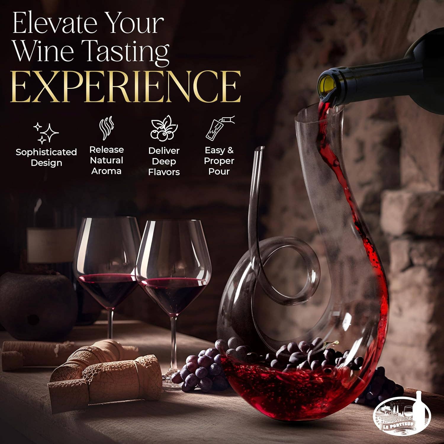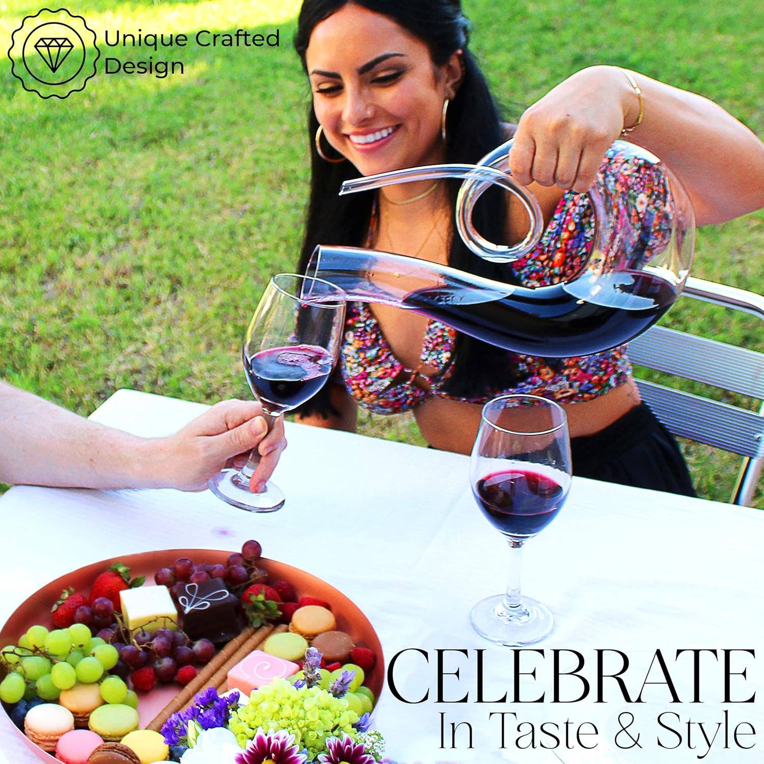 Mycket elegant och läcker karaff för luftning av en flaska vin (75 cl). Den spännande formgivningen gör denna karaff till en perfekt present och en ”conversation piece” på middagen.